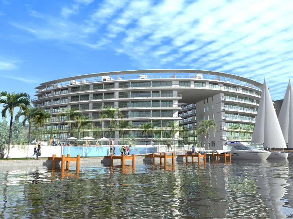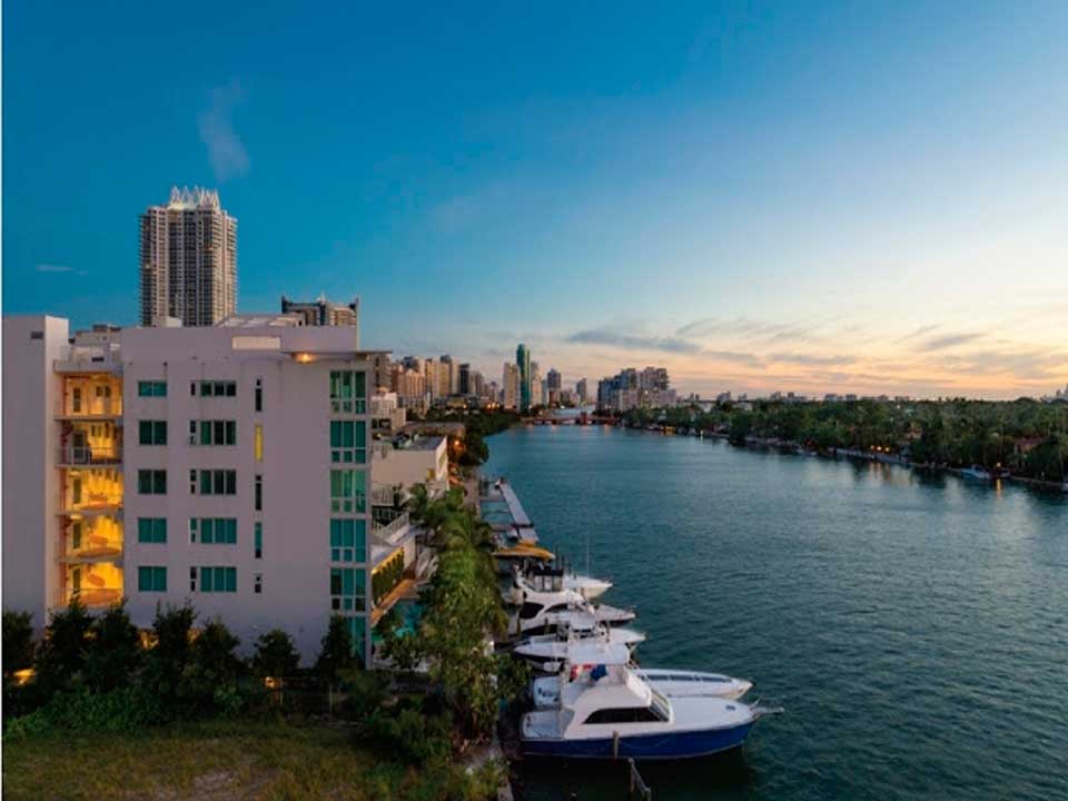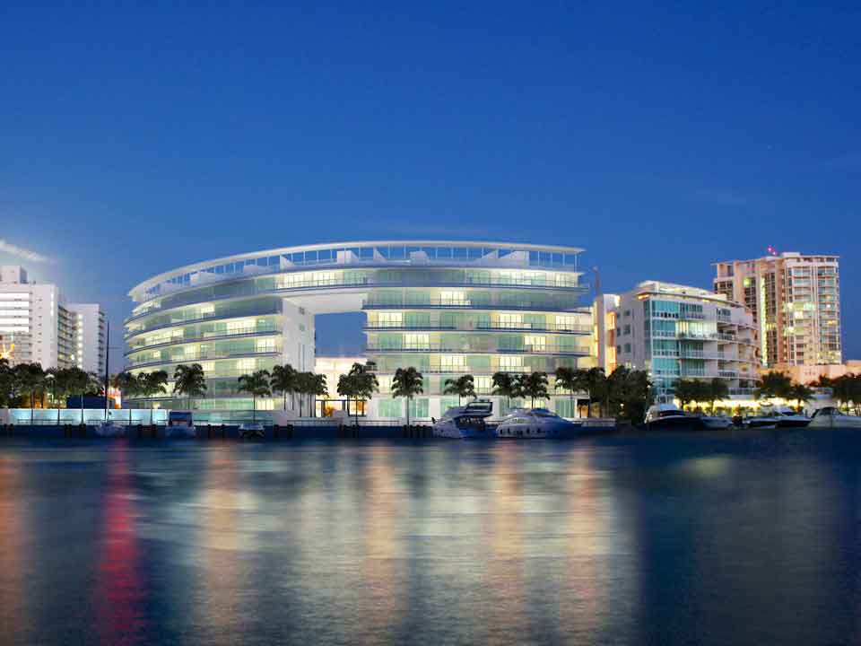 Peloro on the Bay continues a highly successful model of luxury condominium living in one of the most attractive locations in the Miami area. Located directly on the Intracoastal waterways in North Beach, this boutique-sized development expands on the Regatta, one of the area's most successful ventures. Inspired by the curvilinear glass facade of the Regatta and marina access to the waterways, Peloro adds an inspired pedestrian walkway, a protected interior oasis with tasteful water features, full luxury services and more, and all for just 118 waterfront residences. Amenities are up to the highest standards. These include 18 dock slips in a private, full-service marina. A lushly landscaped promenade along Indian Creek aptly called the Riverwalk offers a chance for mild exercise and contemplation. Contemplation, too, is invited in The Atrium, a tropical courtyard spangled with a reflecting pool and waterfalls.