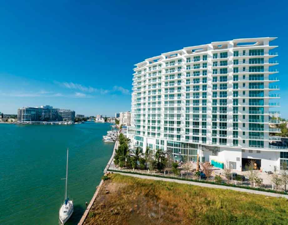 Residences at Peloro condo take full advantage of the view and the play of sunlight on the Intracoastals, making the most of 9-foot-4-inch ceilings and floor-to-ceiling hurricane-proof windows. Or, step outside onto your own private balcony and watch the Shane Rowing Club practices and the oceangoing yachts find their slips. Penthouses offer private roof terraces with Jacuzzis.
